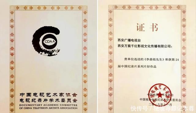 2018年记录片《李鼎铭先生》,荣获中国电视艺术家协会、中国视协电视记录片学术委员会颁发的第24届中国记录片系列片好作品奖。这是中国记录片业界参评数目最多、限制最大、规格最高的评比活动,有来自中央和各场所电视台、影视机构共83家单元629部作品参加评比。