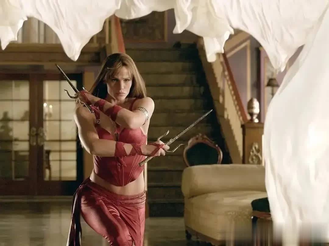 21年前,31岁的詹妮弗·加纳碰巧当打之年,《超胆侠》(2003)与《艾丽卡(黑天神)》(2005)里两柄浪东说念主十手叉舞得虎虎生威,一袭红色紧身衣尽展绝世好体魄。可惜这两部电影不叫好也不叫座,就连我这种骨灰级影迷都险些忘了个鸡犬不留。