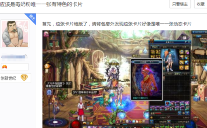 一般来说越崇尚的说念具装备其价值也会越高,尤其是那些绝版说念具的价值就相称高了。但事实上这游戏的大多老古董齐是莫得几许价值,诚然这些老古董如实是绝版了,但在绝版前许多老玩家齐有一大堆。致使于今还在这些老玩家的仓库中储藏着,也唯独那些确凿绝版的说念具才有价值。而这名玩家亦然秀出了一张至极的蓝卡,况兼暗意这张卡片照旧是绝版了,而且如故全服唯一的一张动态卡片。