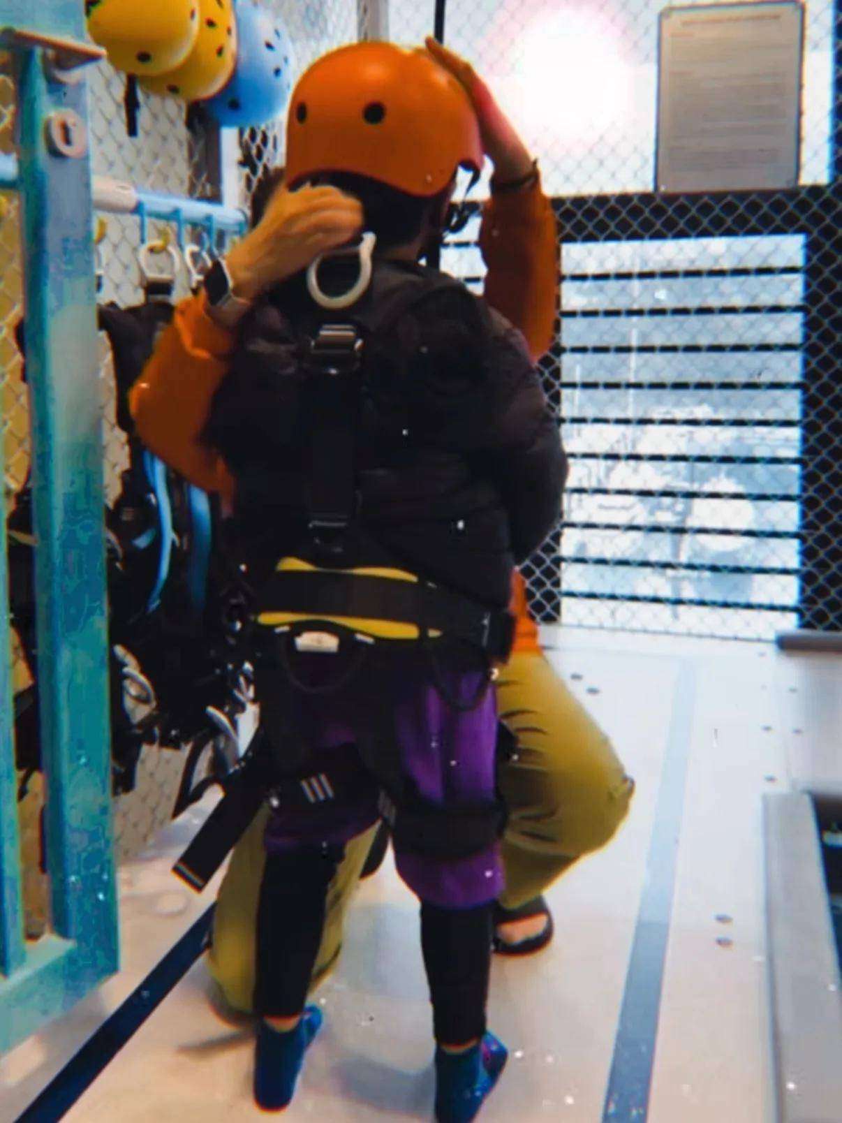 还有一张是Marcus正在穿装备准备玩游戏的像片,他戴着安全帽,一稔安全带,背影看起来很帅气。7岁的Marcus的确长高了许多呀,打扮也很文静,嗅觉穿搭作风跟姆妈的确很像。