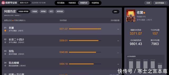 适度12月21日上昼10时13分,从“猫眼专科版”及时数据显现可知,刻下热播电视剧中,网播热度榜最高的五部剧隔离如下: 1、《老舅》 主演:郭京飞/王佳佳/陈明昊 剧情点评:不是祸殃的也不是艰难的校正剧,而是轻率的,搞笑的,时常东说念主的,热心个体的叙事。不同凡响,不夸大不庞杂。东说念主性的善恶王人展现,东说念主生上下起落王人不drama,处境好坏王人自有生活之说念,东说念主物不刻板。老舅这个脚色是这个剧作风的代表,跟谁王人能作念一又友,灵巧也